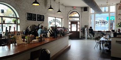 Providing small batch In-House hand roasted artisan coffee, this family-owned and operated coffee shop also works with local suppliers and bakeries to source the freshest ever changing snack and pastry offerings to compliment your coffee choices. Also enjoy tea, Kombucha, cold brew, nitro, seasonal lattes and special coffee flavors like Bananas Foster or Peppermint Hot Chocolate all served in their earth friendly cups and lids. Their dog friendly seating area offers a relaxing atmosphere to enjoy a cup on your own, with friends or fellow travelers.